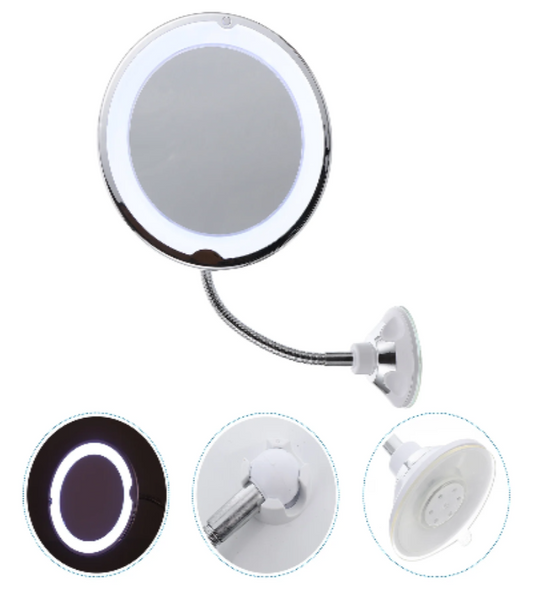 LED Makeup Mirror with 360° Rotation: Magnifying and Suction cup